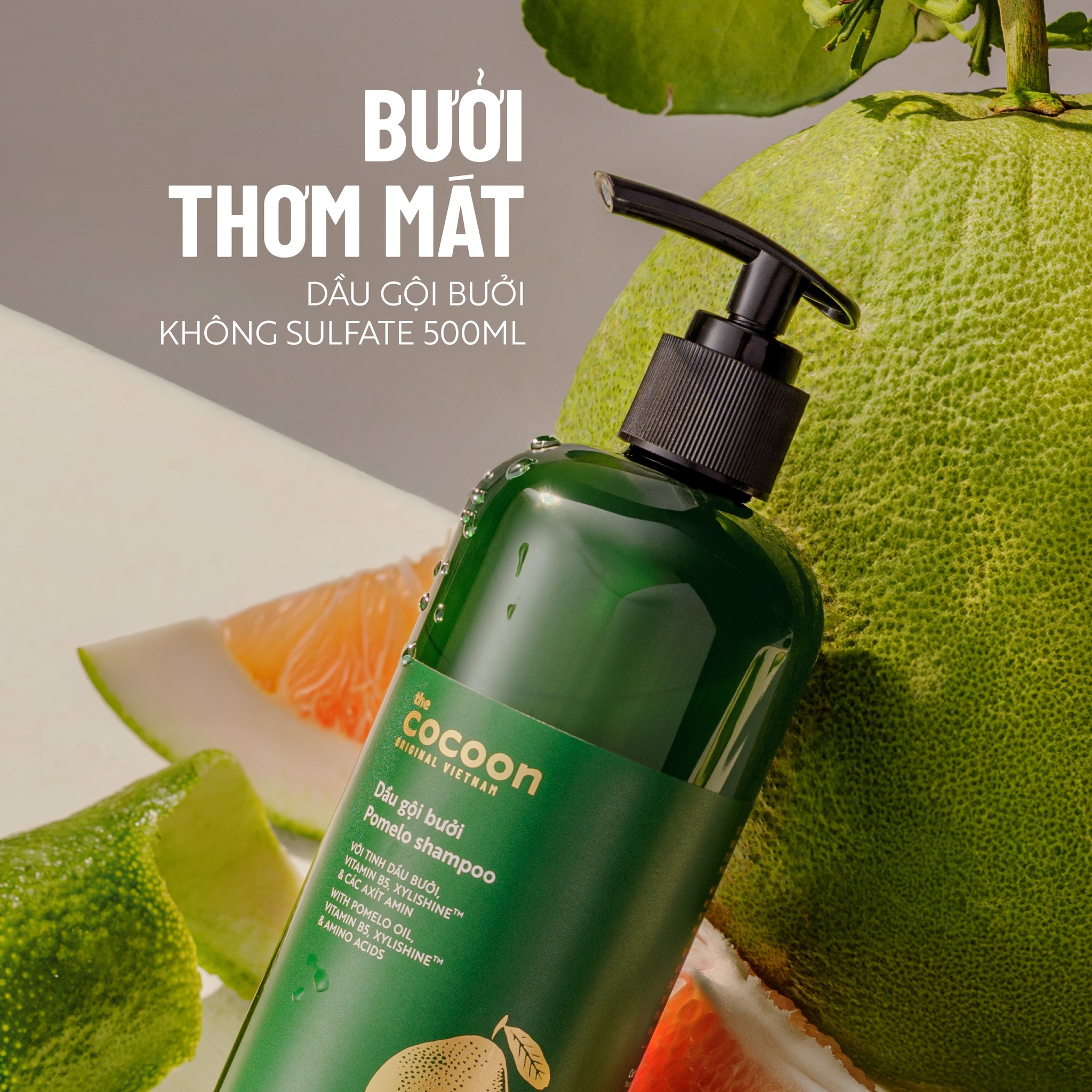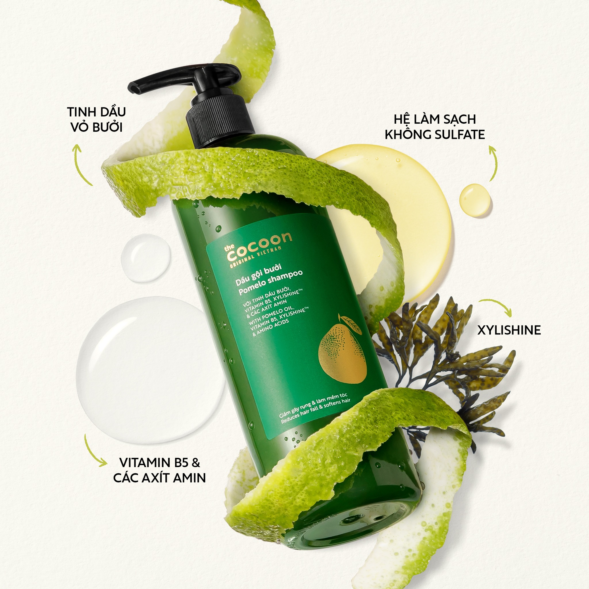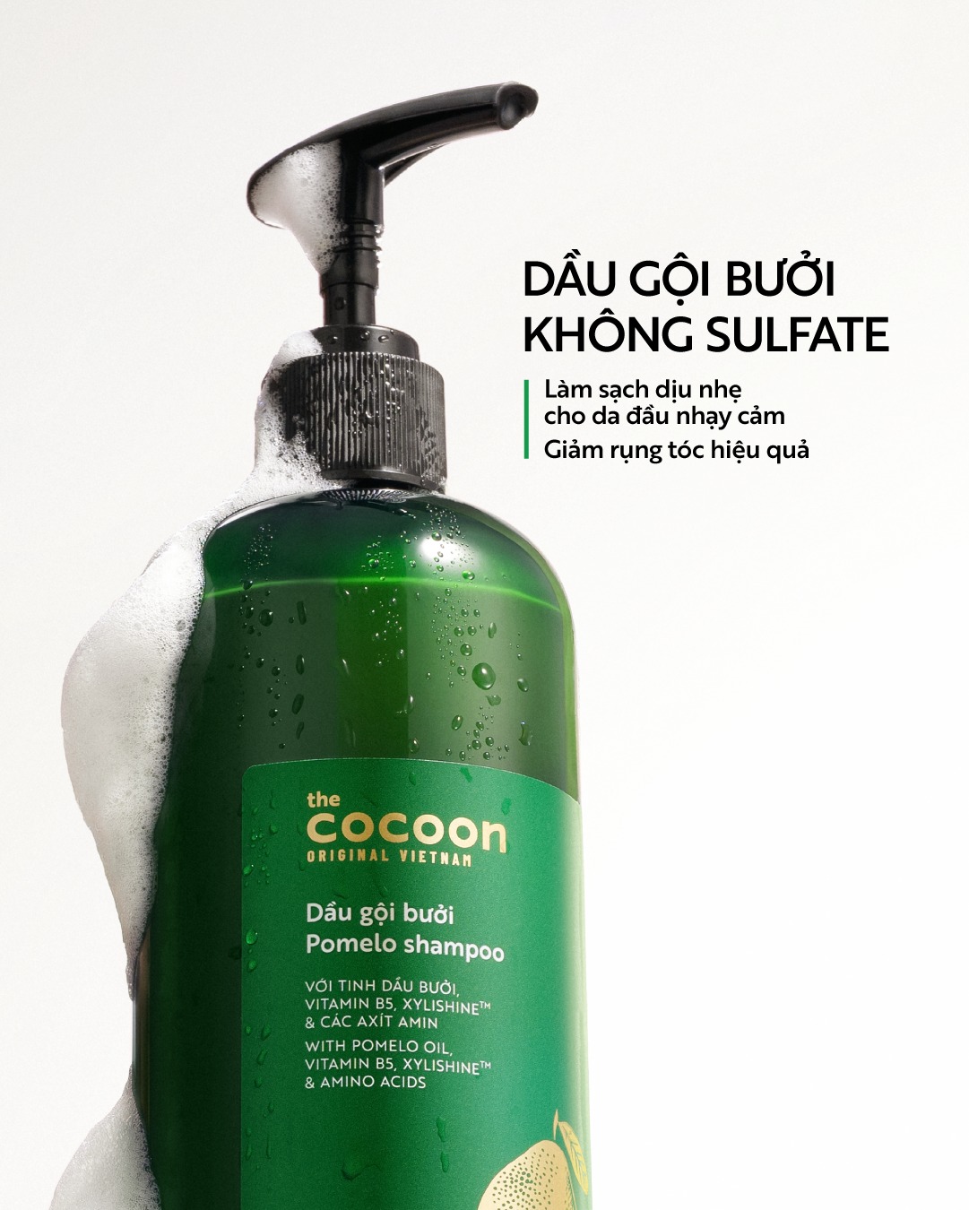 Từ tinh dầu vỏ bưởi Việt Nam truyền thống kết hợp với vitamin B5, hoạt chất dưỡng ẩm Xylishine™ cùng công thức dịu nhẹ không chứa sulfate, dầu gội bưởi giúp làm sạch tóc và giảm gãy rụng, mang lại mái tóc đen dày, chắc khoẻ và mượt mà