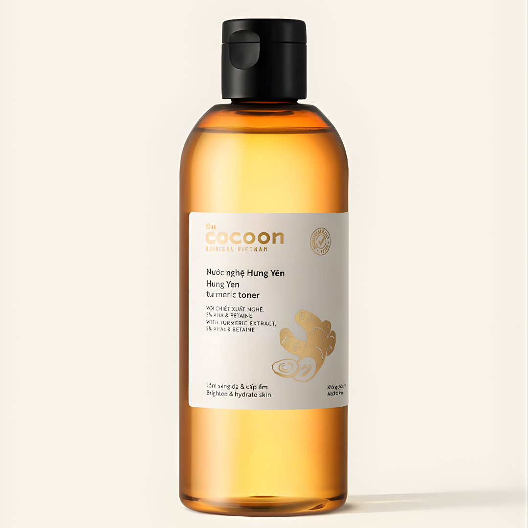 Được chiết xuất từ củ nghệ canh tác tại Hưng Yên, kết hợp với AHA và hoạt chất dưỡng ẩm betaine, nước nghệ cung cấp độ ẩm cần thiết, mang lại làn da sáng mịn và đều màu.